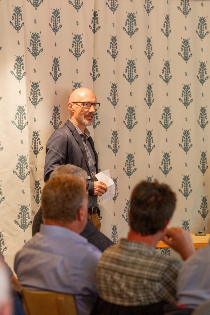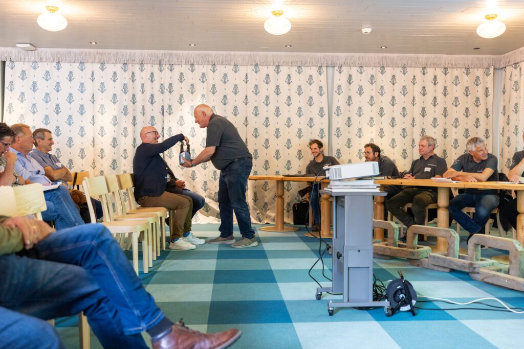 Zum Auftakt ermöglichte Christian Weissenbacher, Geschäftsführer der Brauerei Speluca, eine spannende Führung durch den Betrieb. Die Kombination aus Handwerk, Innovation und Regionalität spiegelte auf eindrückliche Weise Werte wider, die auch die Bündner Wald- und Holzwirtschaft prägen. Selbstverständlich durfte eine Degustation der hauseigenen Bierspezialitäten dabei nicht fehlen. Nach dem Ortswechsel ins Hotel Bodenhaus eröffnete Präsident Peter Flütsch den offiziellen Teil mit einer herzlichen Begrüssung. Christian Simmen, Gemeindepräsident von Rheinwald, hiess die Teilnehmenden willkommen und stellte kurz die Gemeinde vor. Aufgrund eines weiteren Termins nutzte er die Gelegenheit, direkt im Anschluss sein Referat zum «Rheinwaldner / Schamser-Holzkettenprojekt» zu halten. Das Projekt, bei dem ein Mehrfamilienhaus mit Erstwohnungen für die lokale Bevölkerung unter konsequenter Verwendung regionaler Materialien entsteht, zeigt beispielhaft, wie geschlossene regionale Wertschöpfungsketten in der Praxis umgesetzt werden können.