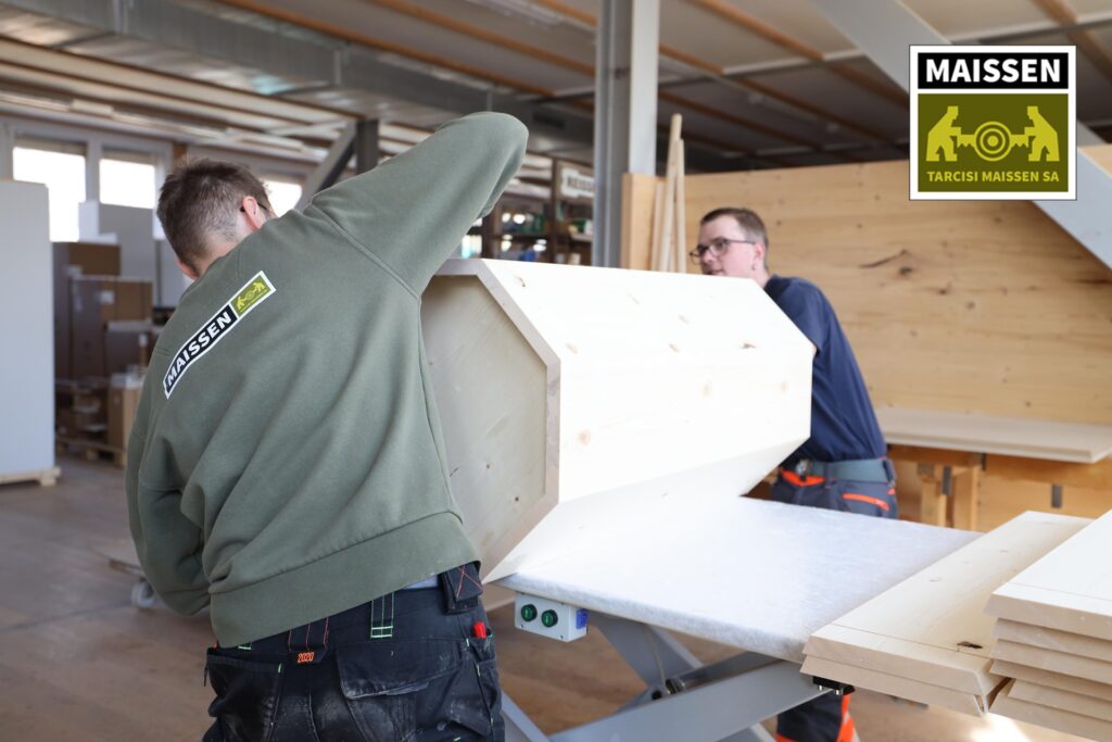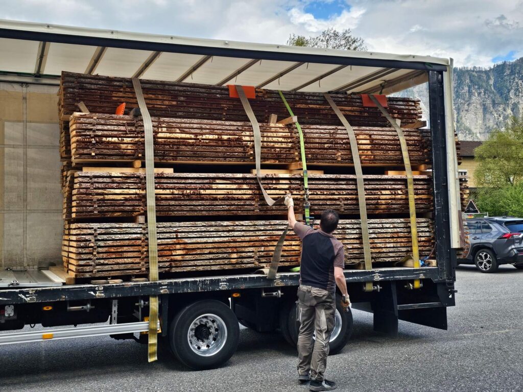 Graubünden Holz unterstützt koordinativ und kommunikativ dieses Projekt, welches vom Säntis Innovations-Cluster Holz initiiert wurde. Auch aus Graubünden wurde 215m3 Rundholz bereitgestellt, welches in verschiedenen Bündner Sägereien eingeschnitten wurde. In einer Halle in Landquart wurden die verschiedenen Schnittwaren aus der Region gesammelt und anschliessend zu einzelnen Paketen sortiert. Aktuell werden die Schnittwaren auf die verschiedenen Holzbaubetriebe und Schreinereien verteilt, so dass Module des Muni sowie des Gabentempels und der Schwingerbar daraus erstellt werden können.