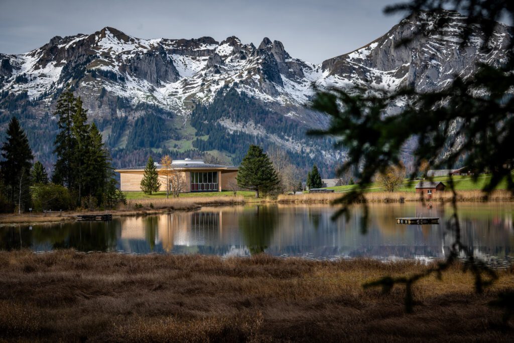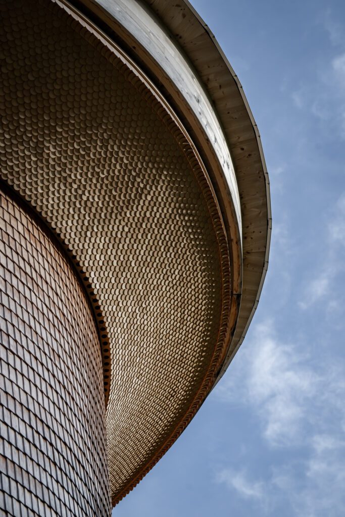 Im Zentrum der Konzeption des Klanghauses stand die akustische Perfektion. Der Ton für die Musikerinnen und Musiker im Innenraum war entscheidend, so dass alles andere dieser Idee untergeordnet wurde. Eingebettet in die natürliche Umgebung mit dem See und dem angrenzenden Wald, fügt sich das Haus harmonisch in die Landschaft ein und lässt die Natur gleichsam Teil des Klangs werden.