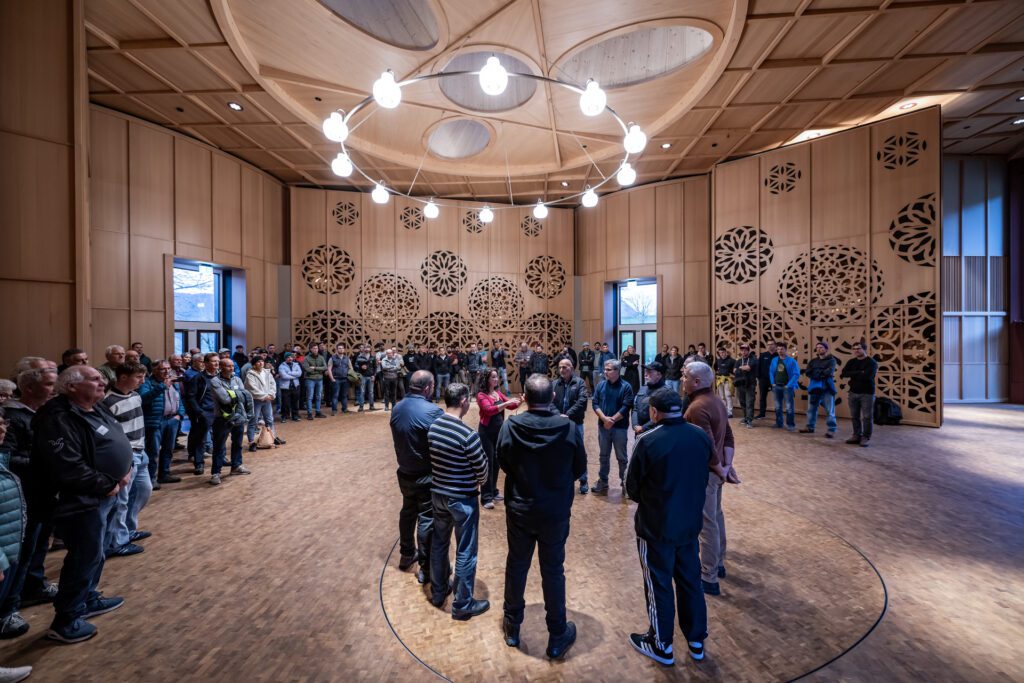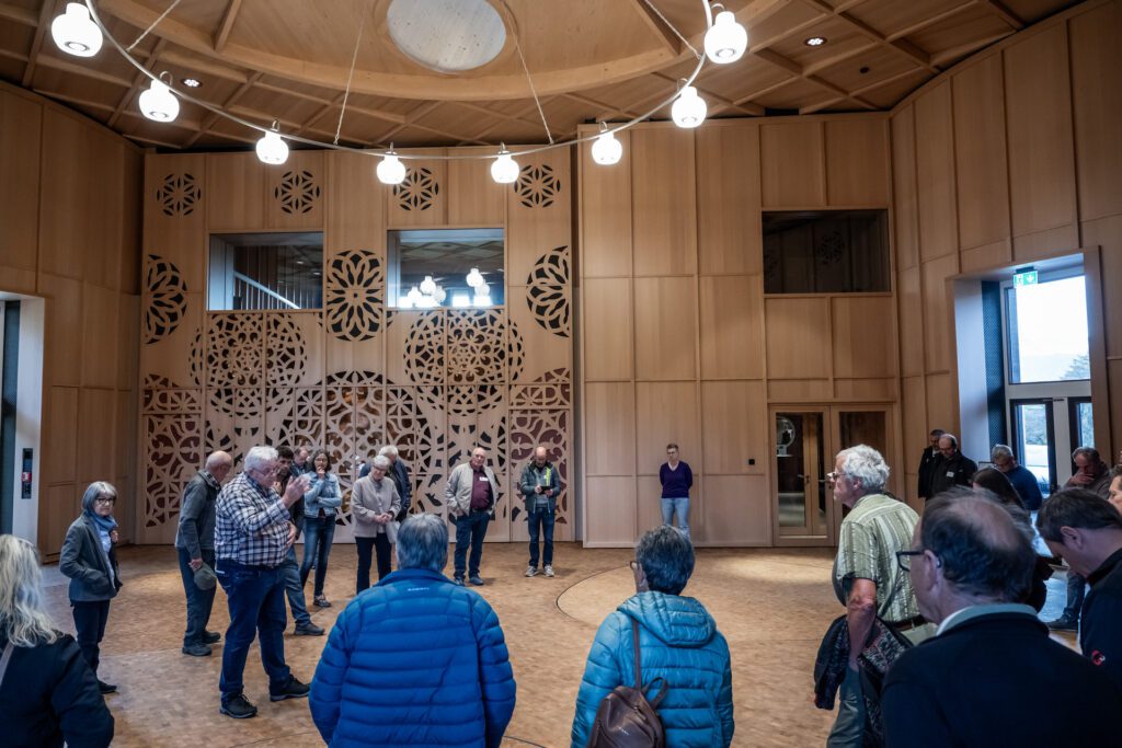Bei einer spannenden Führung mit Richard Jussel, Projektentwickler Holzbau und ehemaliger Geschäftsführer der Blumer-Lehmann AG, erhielten die Gäste eindrückliche Einblicke in die Entstehung und Bauweise des Klanghauses. Das Gebäude ist als begehbares Instrument konzipiert und verbindet Architektur, Klang und Natur auf besondere Weise – ein inspirierendes Beispiel für innovativen Holzbau.