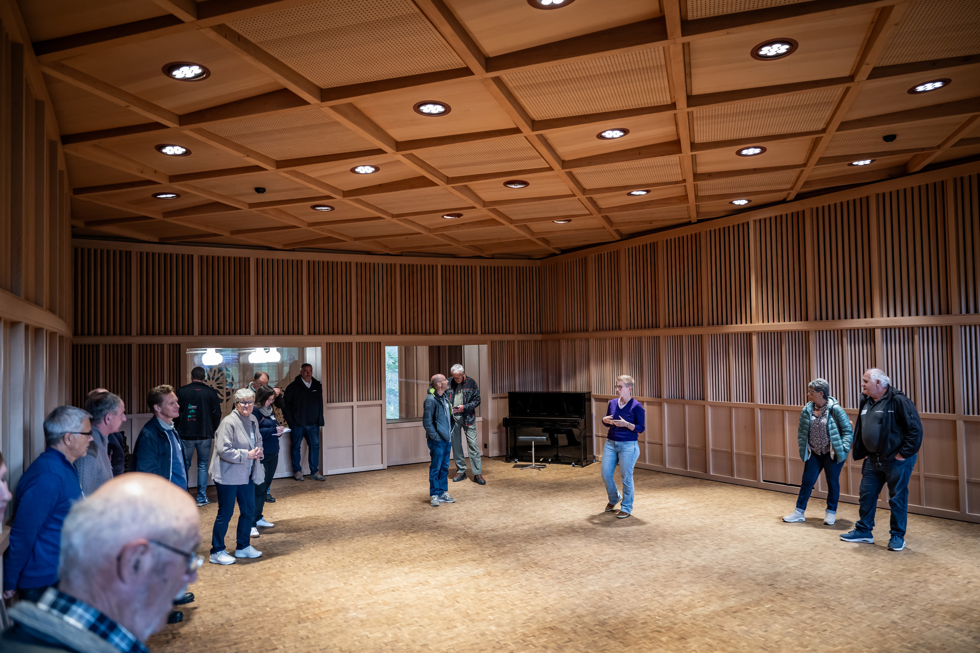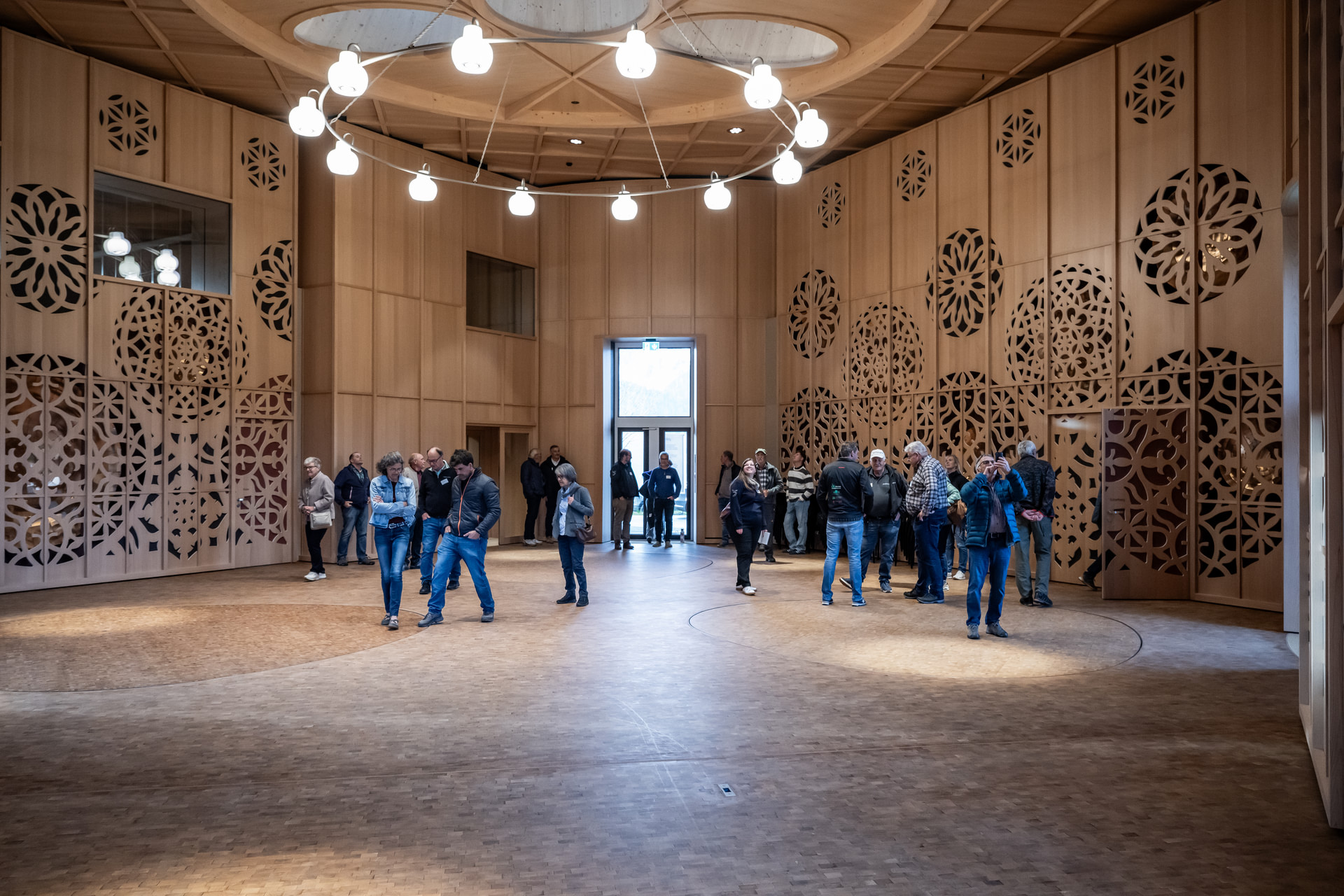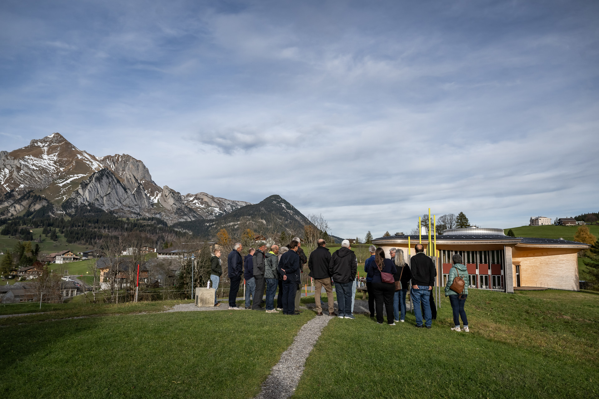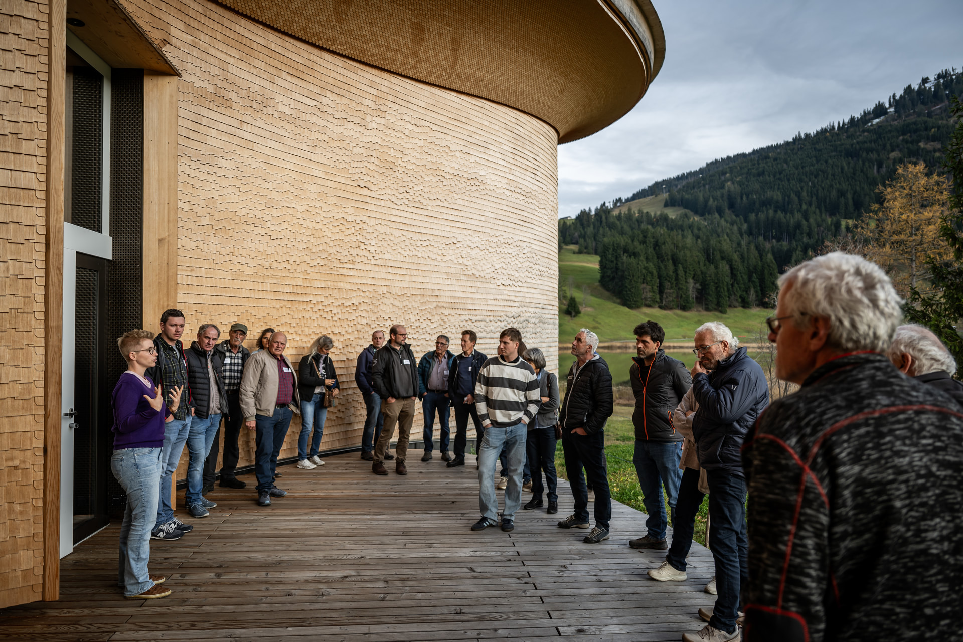 Bei einer spannenden Führung mit Richard Jussel, Projektentwickler Holzbau und ehemaliger Geschäftsführer der Blumer-Lehmann AG, erhielten die Gäste eindrückliche Einblicke in die Entstehung und Bauweise des Klanghauses. Das Gebäude ist als begehbares Instrument konzipiert und verbindet Architektur, Klang und Natur auf besondere Weise – ein inspirierendes Beispiel für innovativen Holzbau.