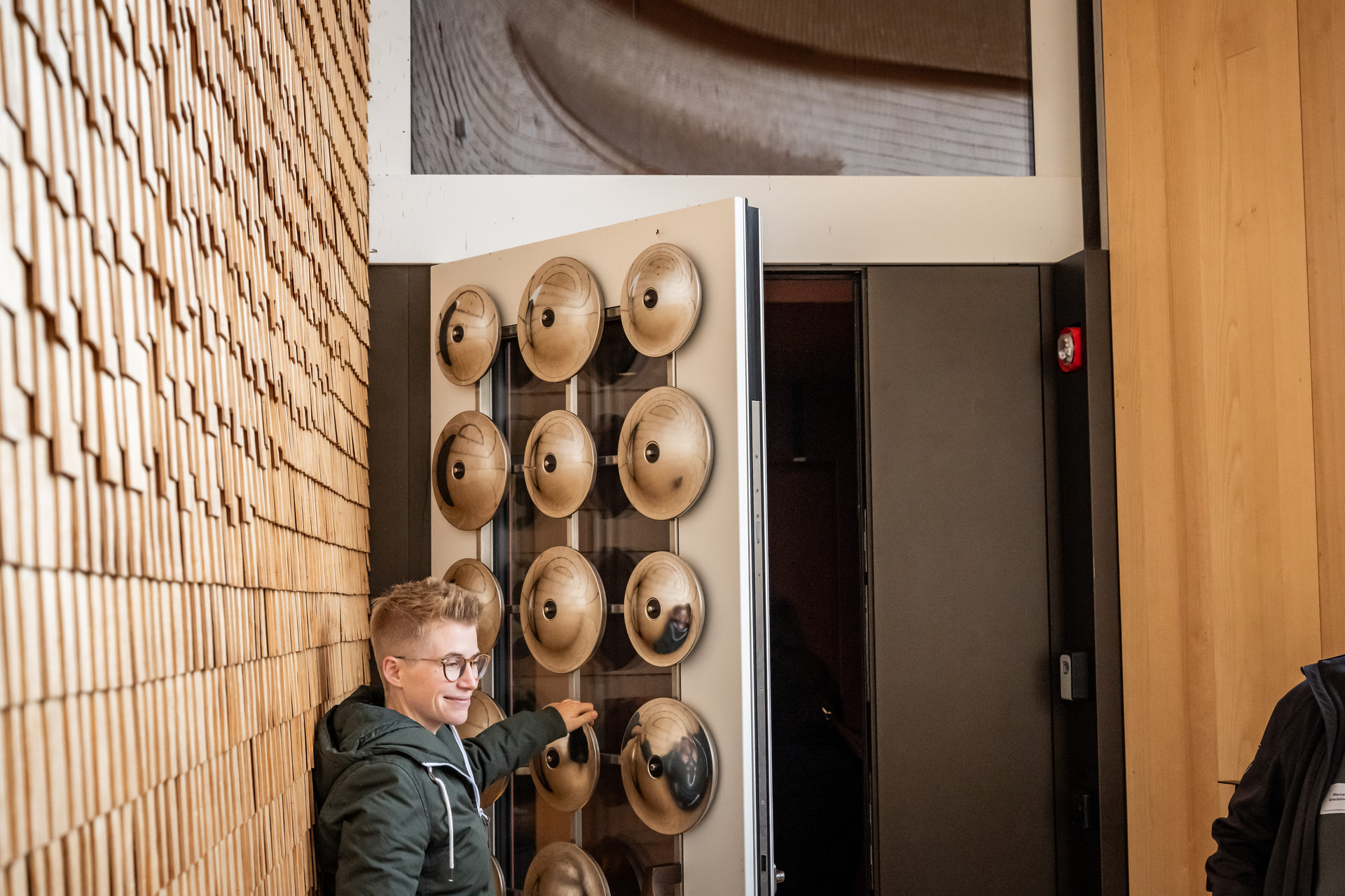 Für die musikalischen Aspekte rund um Ton, Hall und Echo im Innern des Klanghauses sorgte Katja Bürgler, Berufsmusikerin, Chorleiterin und Kursleiterin der Klangwelt Toggenburg. Mit ihrer klangvollen Stimme demonstrierte sie eindrücklich, wie unterschiedlich die Räume je nach Einstellung genutzt werden können und wie sich Klang und Architektur gegenseitig beeinflussen.