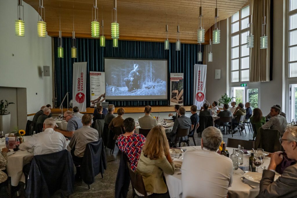 Im thematischen Teil präsentierten Peter Flütsch (Präsident) und Marcel Lerch (Geschäftsführer) von Graubünden Holz das Projekt «Schulterschluss Holzwirtschaft». Ziel ist eine verstärkte Zusammenarbeit innerhalb der Branche, um die Holzwirtschaft nachhaltig und zukunftsfähig zu entwickeln.